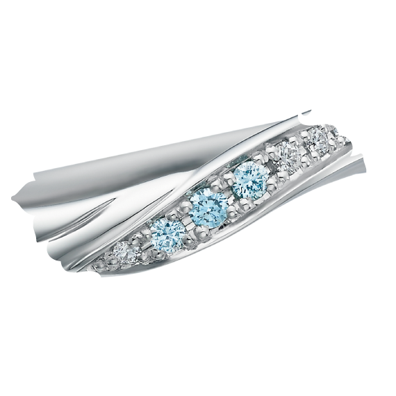 奇跡の瞬間を美しい流線とダイヤモンドで表現したリング。